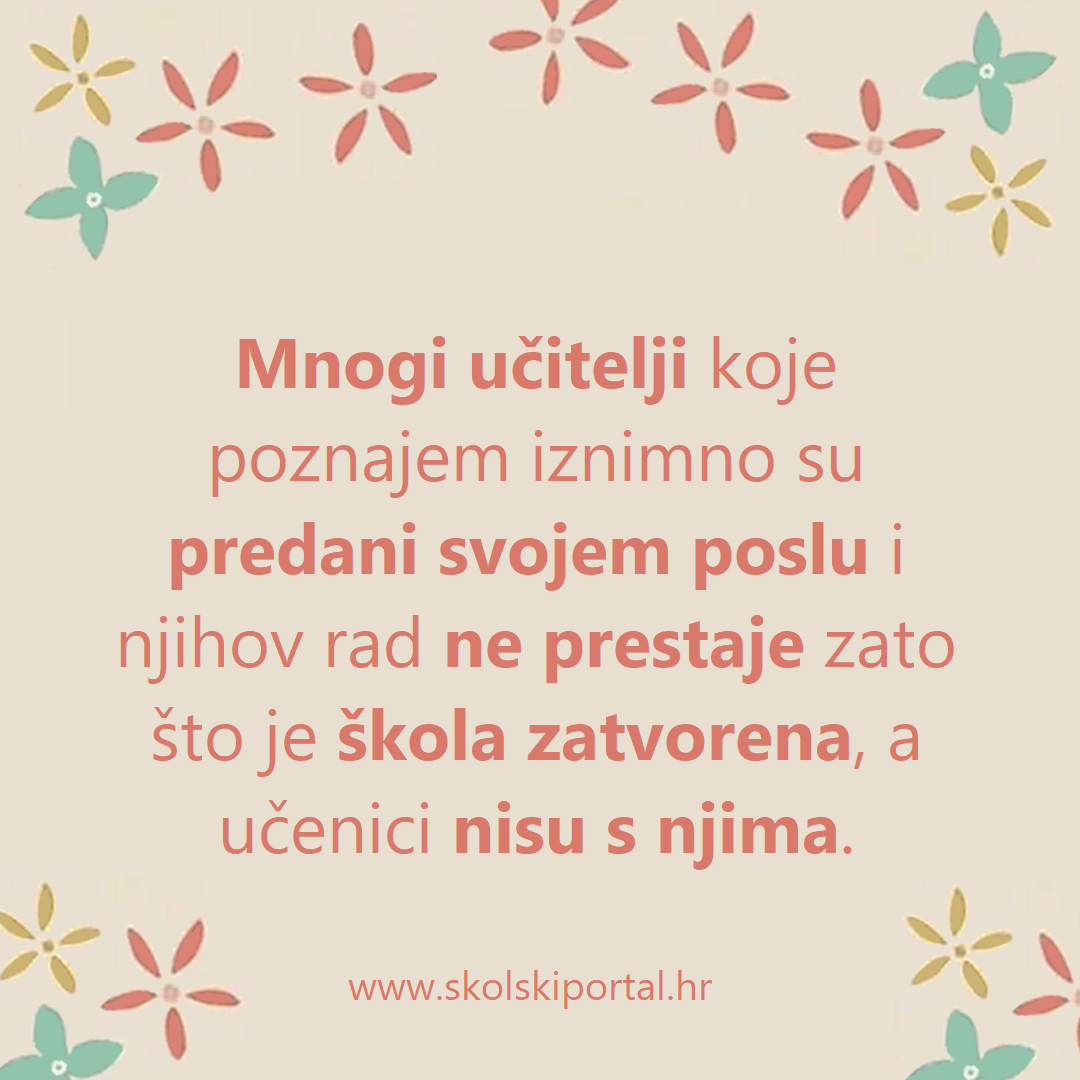 Ocjenjuju učeničke radove, pišu preporuke za one učenike koji su ih u posljednji trenutak zamolili za preporuku te se pripremaju za nastavu u siječnju. Mnogi učitelji iznimno su predani svojem poslu i njihov rad ne prestaje zato što je škola zatvorena, a učenici nisu s njima.