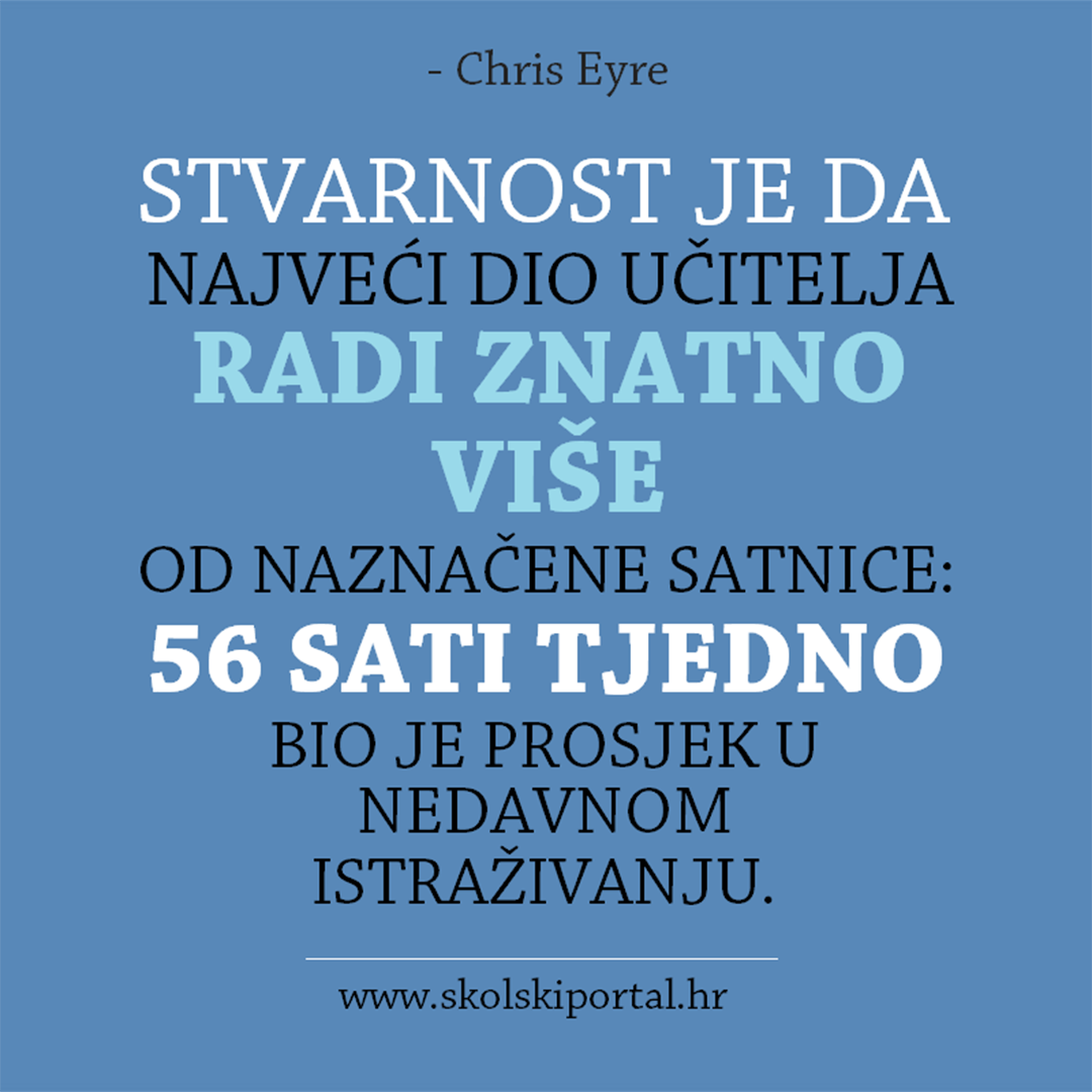 No, nije tako jednostavno. Stvarnost je da najveći dio učitelja radi znatno više od u tom slučaju naznačene satnice: 56 sati tjedno bio je prosjek u nedavnom istraživanju. (Podatci o istraživanju na engleskom su jeziku; ondje piše: „prosječno između 49,5 i 55,1 sati tjedno“ – nap.)