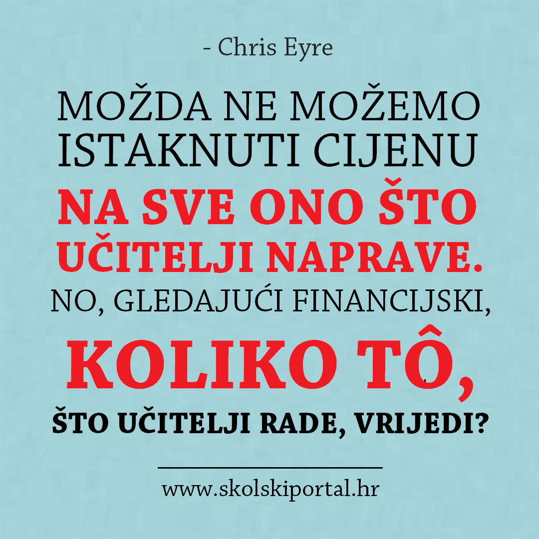„Na prvi pogled mogao bi se steći dojam da su učitelji dobro plaćeni, no uzme li se u obzir broj radnih sati, proizlazi da su plaćeni manje od zaposlenih u drugim zanimanjima“, kaže autor članka o plaćama učitelja u Ujedinjenome Kraljevstvu Chris Eyre.