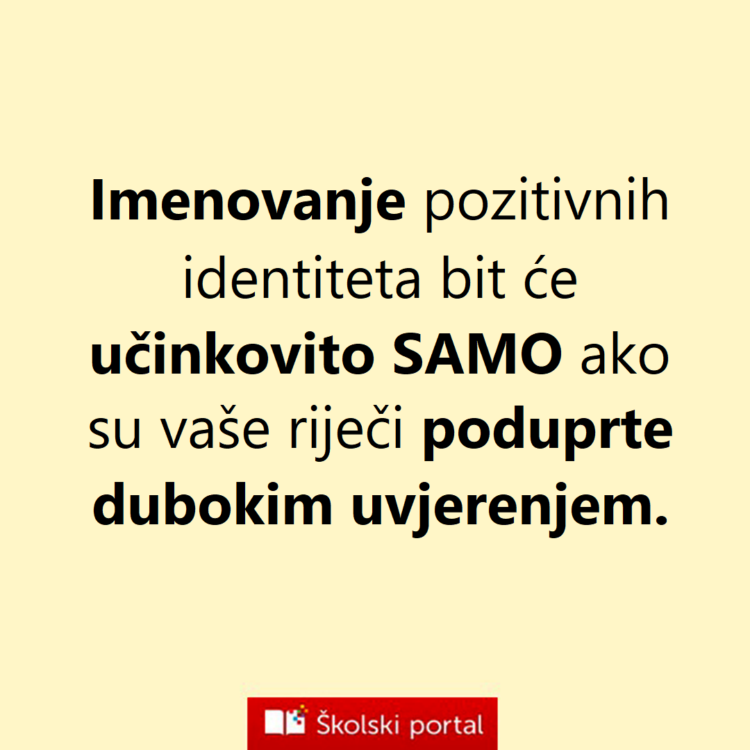 Imenovanje pozitivnih identiteta učenicima pomaže uvidjeti vlastite mogućnosti i sposobnosti te ih istodobno potiče na ostvarivanje tih mogućnosti.