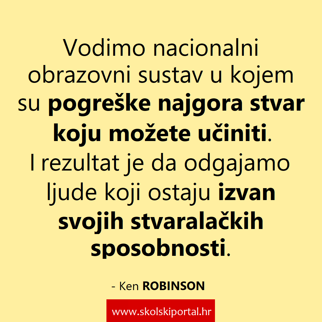 I sada vodimo nacionalni obrazovni sustav u kojem su pogreške najgora stvar koju možete učiniti. I rezultat je da odgajamo ljude koji ostaju izvan svojih stvaralačkih sposobnosti.
