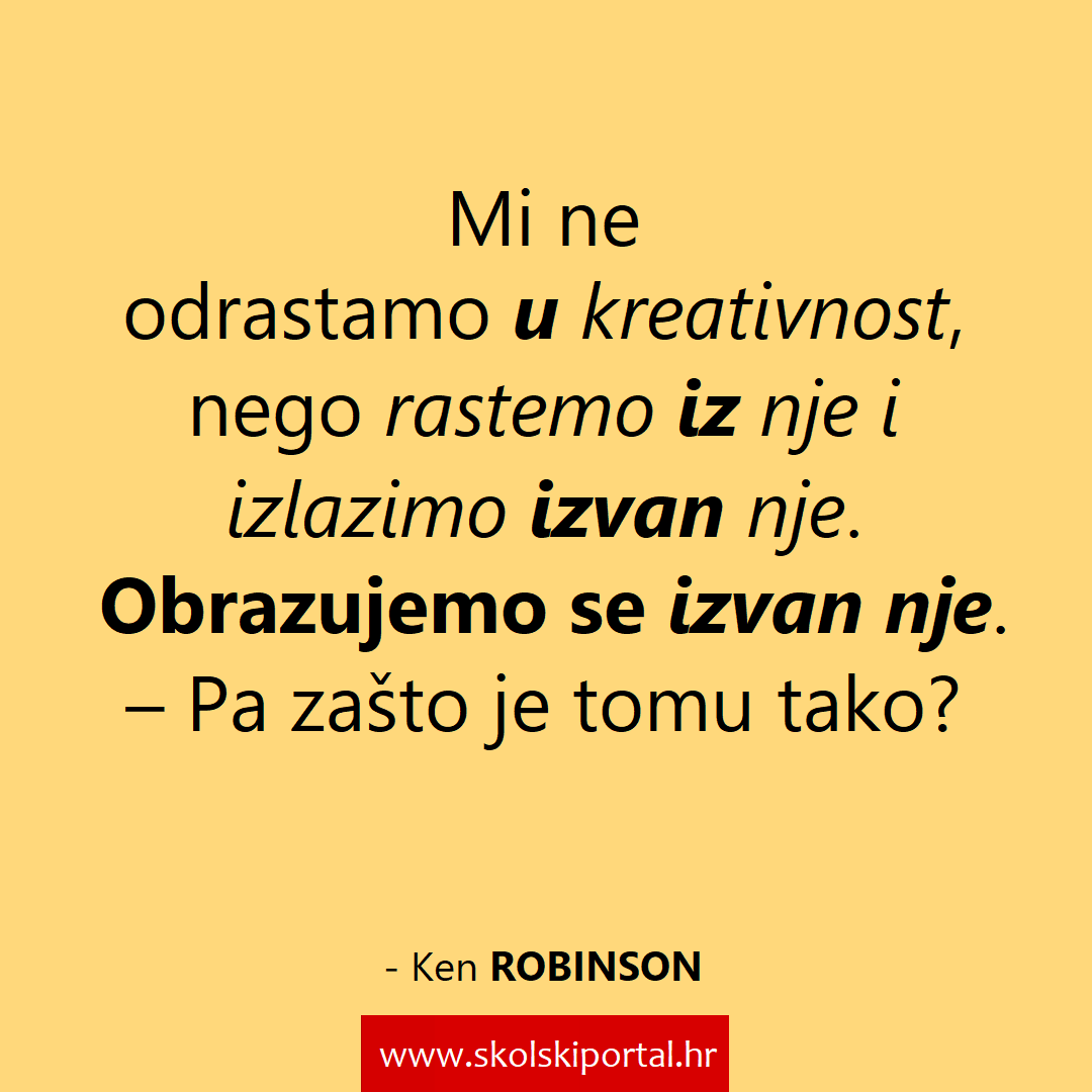 Minule su tri godine otkad nas je napustio Ken Robinson, veliki poznavatelj obrazovanja, teoretičar i pronicatelj obrazovnih stvarnosti, autor i motivator. Zapravo, teško je pronaći preciznu odrednicu kojom bi se vjerodostojno opisao njegov rad jer tragovi koje je ostavljao u svijetu obrazovanja, ali i uopće, svagdje gdje bi se pojavio i kod svakoga koga bi svojim prisustvom dotaknuo, teško su svodivi na nekoliko uvodnih rečenica.