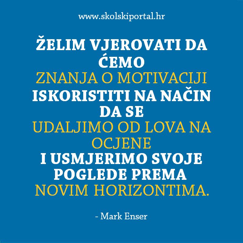 „Želim vjerovati da ćemo spoznaje o motivaciji iskoristiti na način da se udaljimo od lova na ocjene i usmjerimo svoje poglede prema novim horizontima“, kaže u najnovijem članku učitelj i autor Mark Enser.