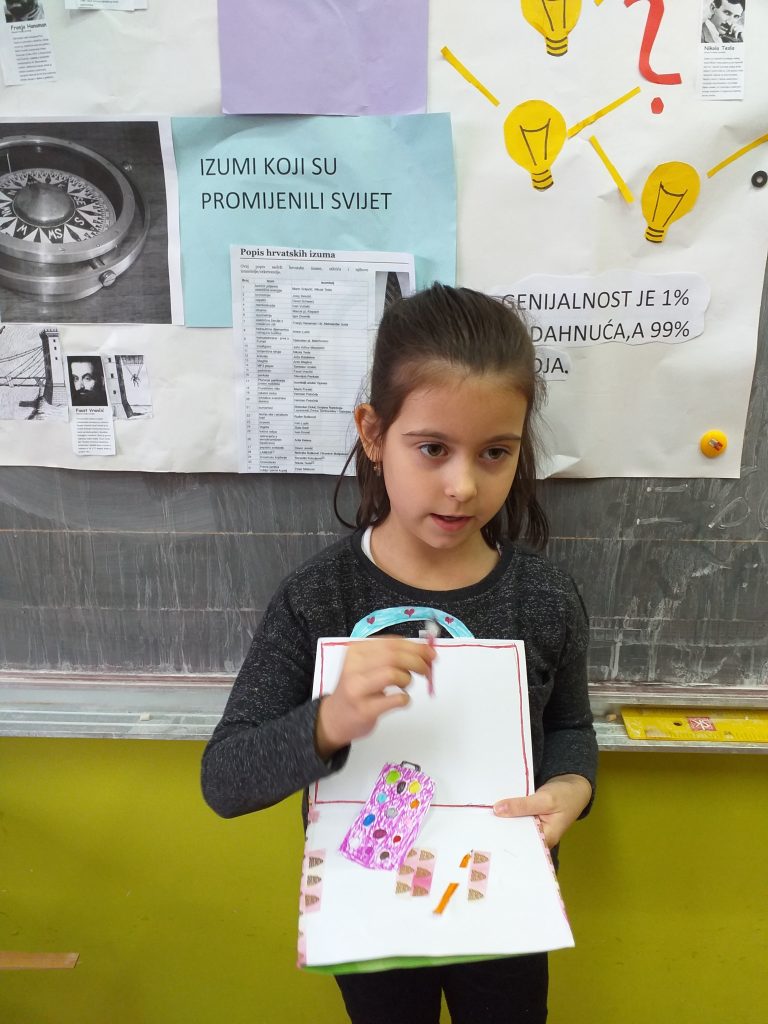 Tijekom razgovora s djecom shvatila sam da imam razred koji će u budućnosti promijeniti svijet. Učenici su svoje izume izrađivali od plastelina i prikazivali crtežom, svatko je cijelom razredu objasnio namjenu svog izuma, čemu služi i kako se pokreće.
