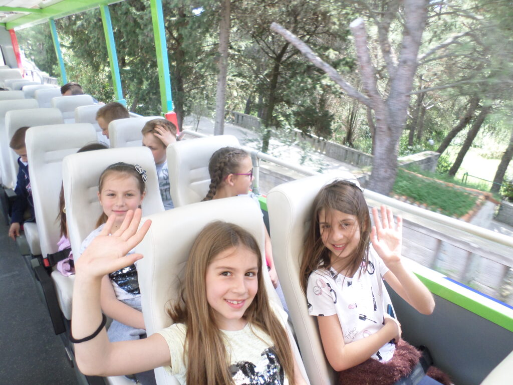 Slijedilo je upoznavanje i predstavljanje škole koja ima produženi boravak učenika. U svojoj su učionici pripremili prigodnu priredbu dobrodošlice te su svojim gostima predstavili slike Splita – nekad i danas. Objasnili su im i otkud potječe naziv škole i kako brdo Marjan, zahvaljujući bogatstvu šume i biljaka, zapravo ima ulogu „pluća”grada Splita. Potom su učenici zajedno posjetili Muzej hrvatskih arheoloških spomenika i razgledali postav muzeja. Kustosica im je pokazala i pobliže objasnila kamene spomenike iz hrvatske povijesti.