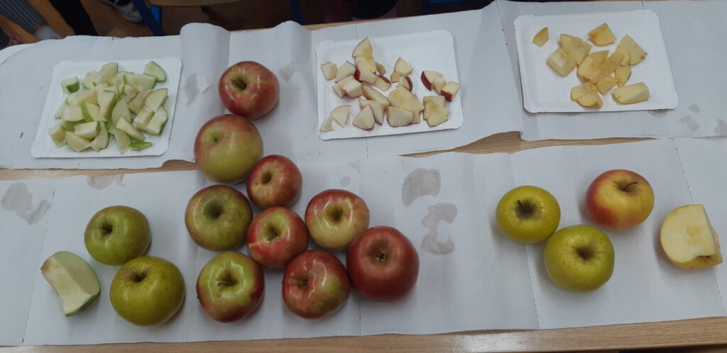 Kako se volimo zdravo hraniti, sudjelovali smo već treći put u projektu Dan jabuka autorica Patricije Hercog i Ljiljane Mudrinić. Učenici su produbili svoje znanje o jabukama u različitim nastavnim predmetima. Istraživali smo utjecaj jabuke na naše zdravlje, vrste jabuka, načine konzumacije i proizvodnje. Organizirali smo i likovne, jezične i matematičke radionice. Projekt smo zaključili izrekom „Po jedna jabuka svaki dan, tjera doktora iz kuće van“.