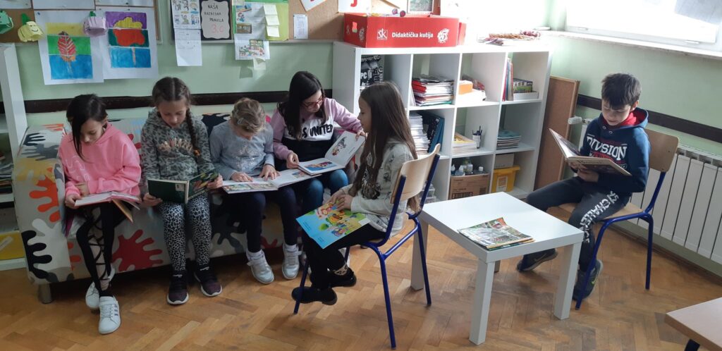 Budući da volimo utonuti u svijet bajki, pridružili smo se projektu Hrvatska bajkovnica autorice Petrunjele Krajačić, projektu Uz čitanje riječi rastu autorica Marije Bulut-Lukačević, Ljiljane Marinjak te Monike Mužar-Kos i projektu Zelena knjiga autorica Ivane Ostrički i Marijane Kune. Sve pročitane bajke i druge priče te ekopriče dramatizirali smo i na taj način razvijali i bogatili govorni izraz, vježbali interpretativno čitanje i čitanje po ulogama.