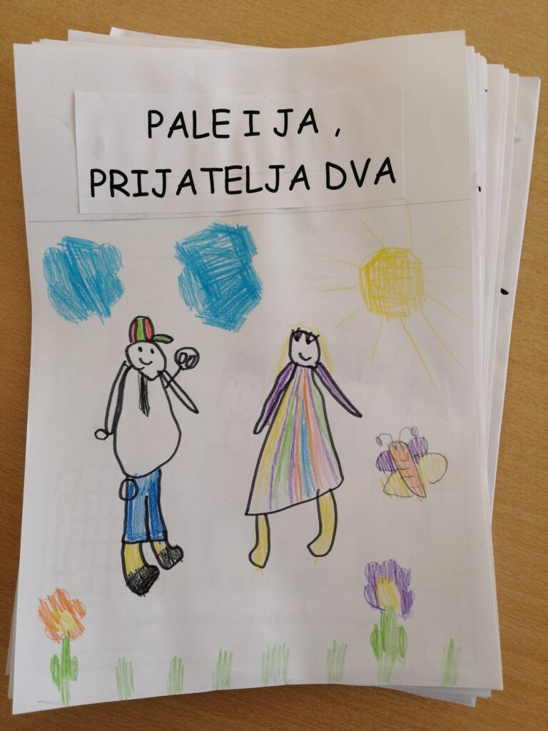 Tako smo u prvom razredu interpretirali djelo danskog književnika Sigsgaarda Pale sam na svijetu. Nakon čitanja i kratke objave doživljaja, prvašići su zaigrali digitalnu igru Čudnovati kotač kojom su ponovili događaje iz priče. Olujom su ideja naveli osobine glavnog lika. Dječak je Pale, prema mišljenju đaka prvaka, vrlo hrabar, spretan, pametan, snalažljiv, vješt te su poželjeli da im bude prijatelj. Pale je nakratko i „oživio“ uz pomoć  plakata pričalice. Učenici su se poistovjetili s Palom te pripovijedali o pustolovinama koje je doživio kad je bio sam, a nakon toga su i razgovarali s njim te mu postavljali pitanja. Vrlo se brzo nametnula jasna poruka priče: Ne možemo živjeti bez obitelji i prijatelja. Za kraj, učenici su izradili slikovnicu pod nazivom Pale i ja, prijatelja dva. Svatko je nacrtao jednu pustolovinu koju bi rado proživio s glavnim likom.