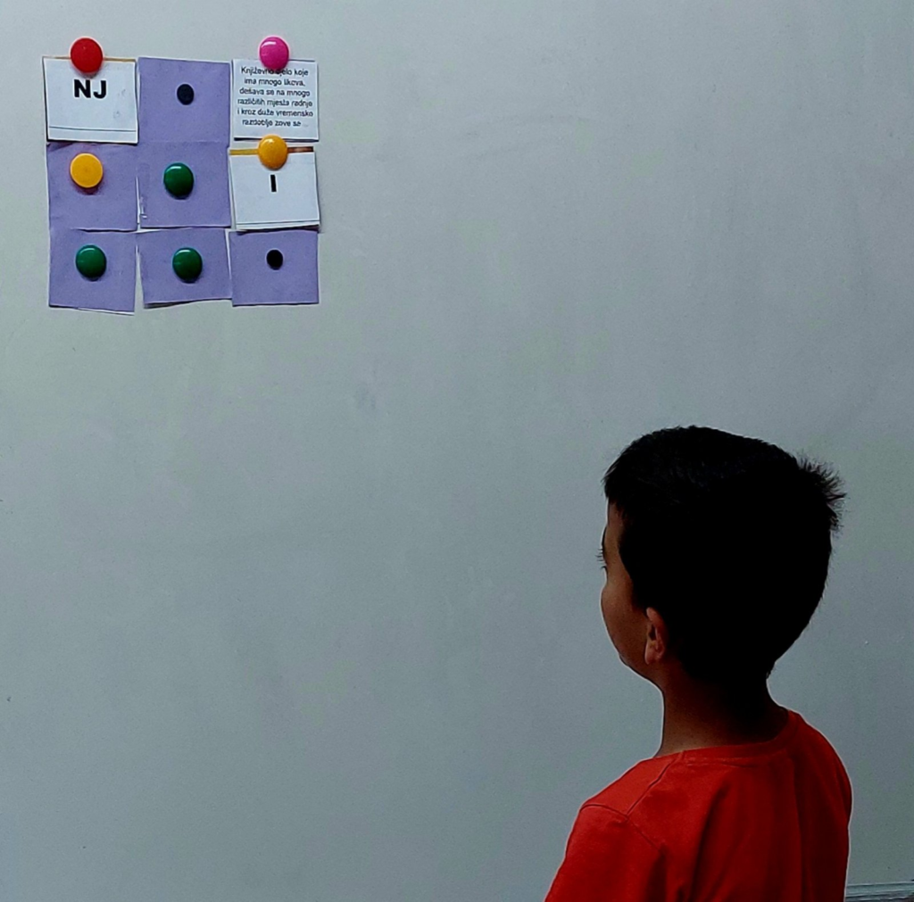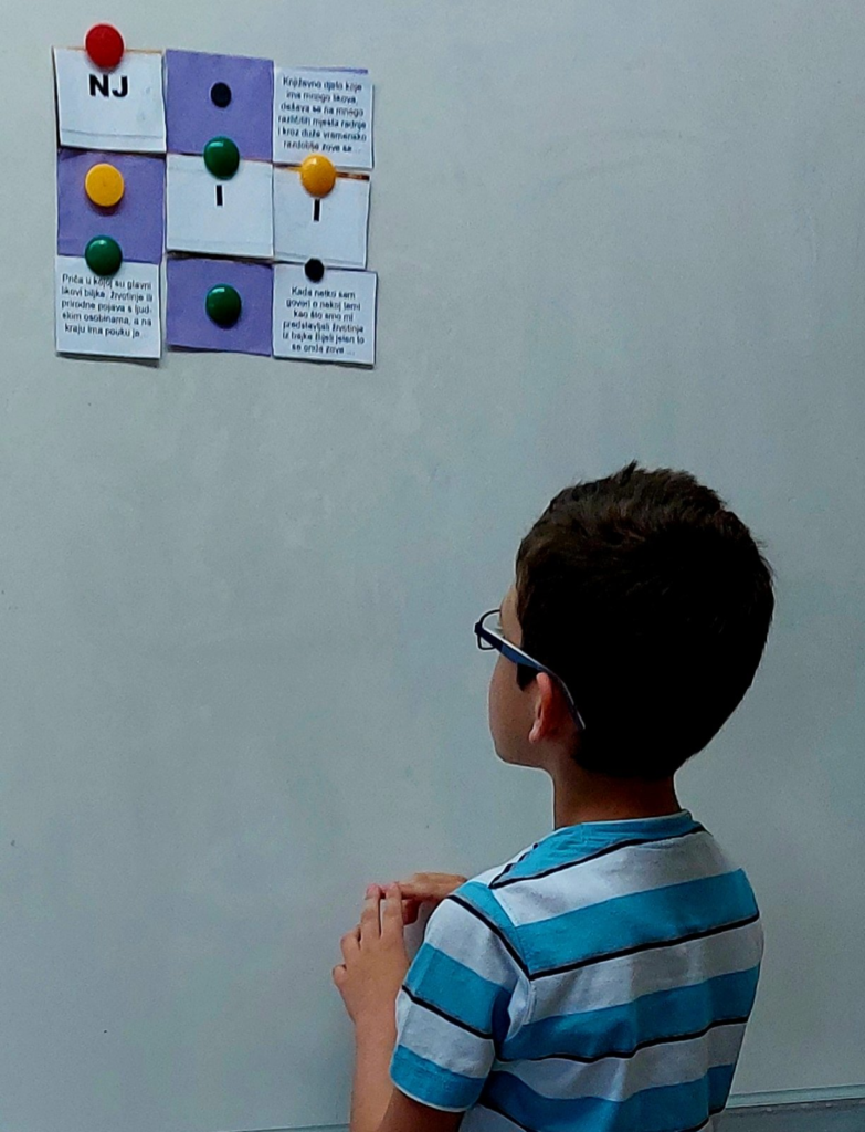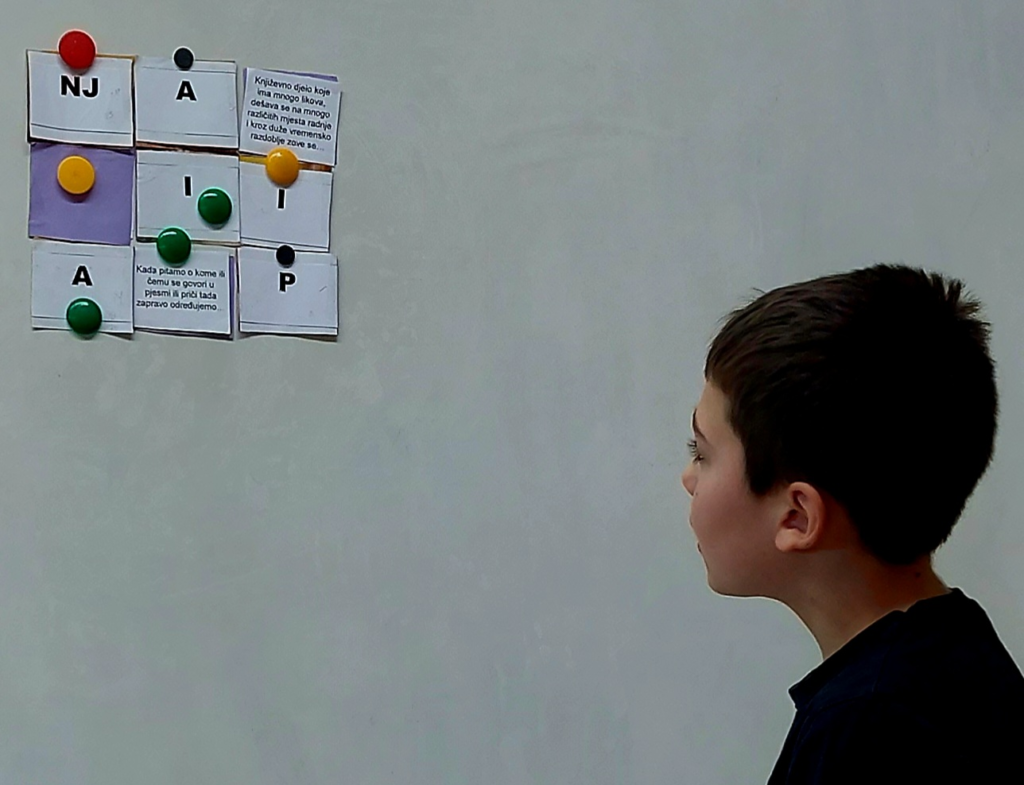 Za uvodni sat pripremila sam slagalicu sa književnim pojmovima usvojenima na satima hrvatskog jezika. Poigrali smo se otkrivajući skrivena slova, a istodobno i ponovili usvojeno gradivo.