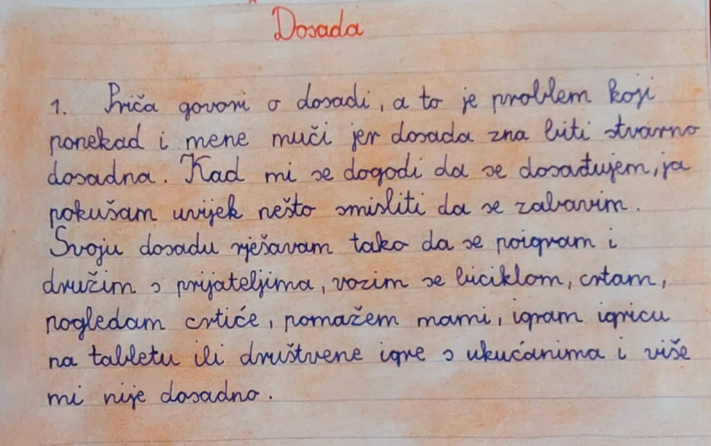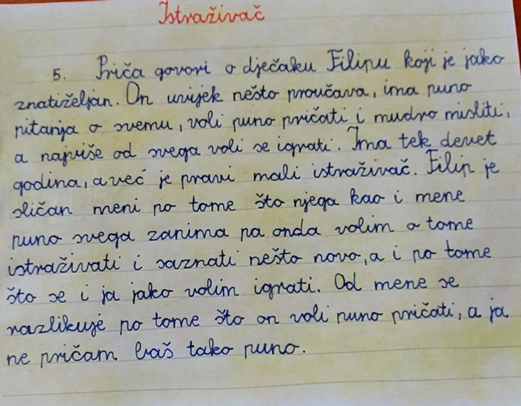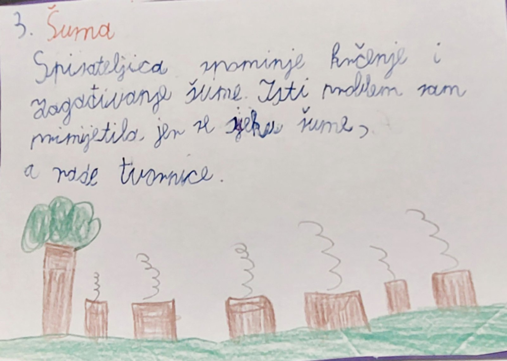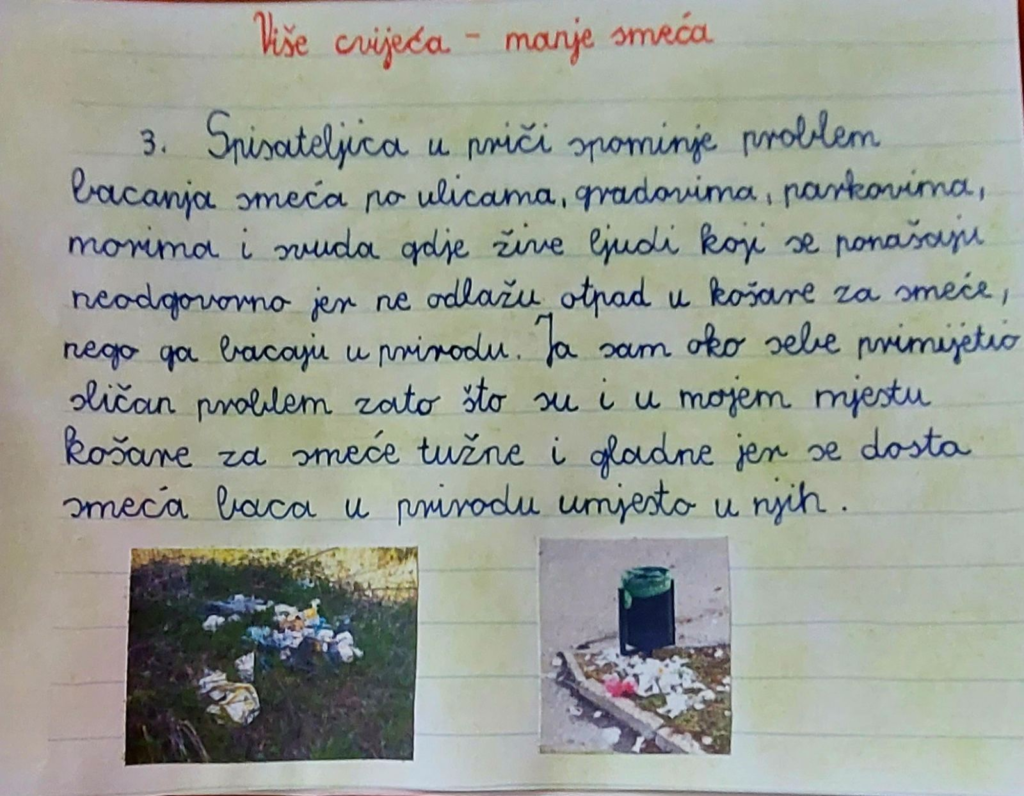 Razgovarali smo o zanimanjima koja se sviđaju učenicima. Obrazlagali su svoj odabir. Potaknuti riječima koje nam je spisateljica uputila, logično se nametnulo pitanje: „Bi li ti htjela/htio postati spisateljica/spisatelj? Zašto? Objasni svoj odgovor.”