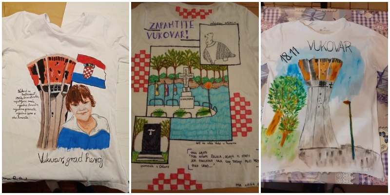 U sklopu projektne nastave iz Povijesti (planirani projekt u Školskom kurikulu) učenici su dobili zadatak oslikati majicu s motivom/motivima koji se odnose na događaje iz naše bliže nacionalne prošlosti. Pokazali su maštovitost, kreativnost, zrelost, poštovanje, trud i osobni doživljaj.
