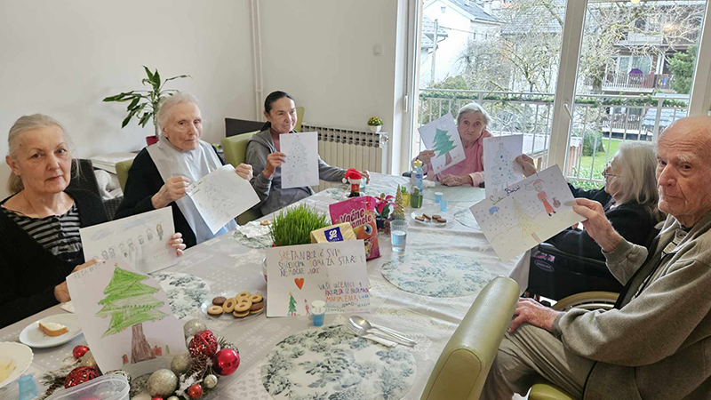 Prije samoga kraja prvog polugodišta ove školske 2024./2025. godine sedmorka se obratila Domu za starije i nemoćne Noni te predložila da ih i ove godine razveseli i iznenadi sitnicama od srca i izmami im osmijehe na lica. Na satima Likovne kulture i Izvannastavne aktivnosti učenici su pripremili mnoštvo crteža i čestitaka za dvadesetak štićenika doma. Roditelji učenika poslali su namirnice koje štićenici vole: kekse, čajeve, kavu i čokolade.