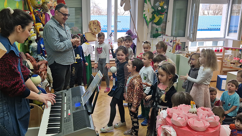 Nakon razgovora o ljubavi, nastavilo se s pjesmom. Dječji žamor zamijenilo je ozareno pjevanje poznatih pjesama iz bajki koje djeca redovito uvježbavaju sa svojim odgojiteljima u skupini. Na kraju su djeca gostu pokazala panoe sa svojim likovnim radovima te vitraje koje su oslikali na temu Valentinova.