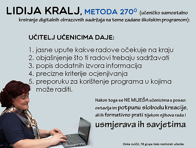 Izvrstan praktičan primjer takvog poučavanja je METODA 2700. Za rad sa svojim osnovnoškolcima osmislila ju je profesorica Lidija KRALJ, koju mnogi smatraju najkreativnijom hrvatskom učiteljicom, a Microsoft je smješta u svjetski vrh kreativnih učitelja 21. stoljeća.