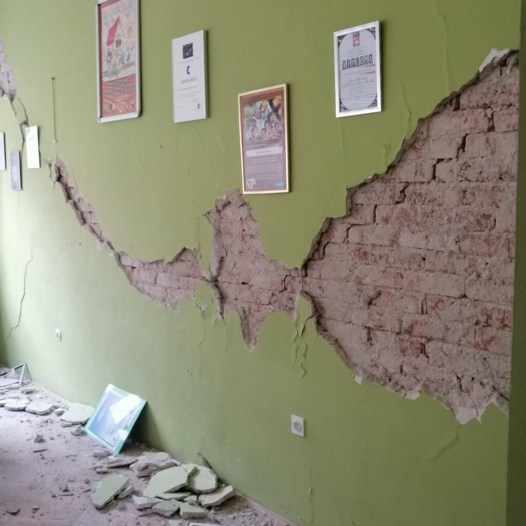 Naše dvije školske zgrade u mjestima Gora i Nebojan, u utorak, 29. prosinca 2020. pretrpjele su velika oštećenja u jakom potresu, a isto tako domovi naših učenika i zaposlenika. Školska zgrade stoje, uspravno, prkose svojom vanjštinom, ali njihova srca (unutrašnjost) su uništena.