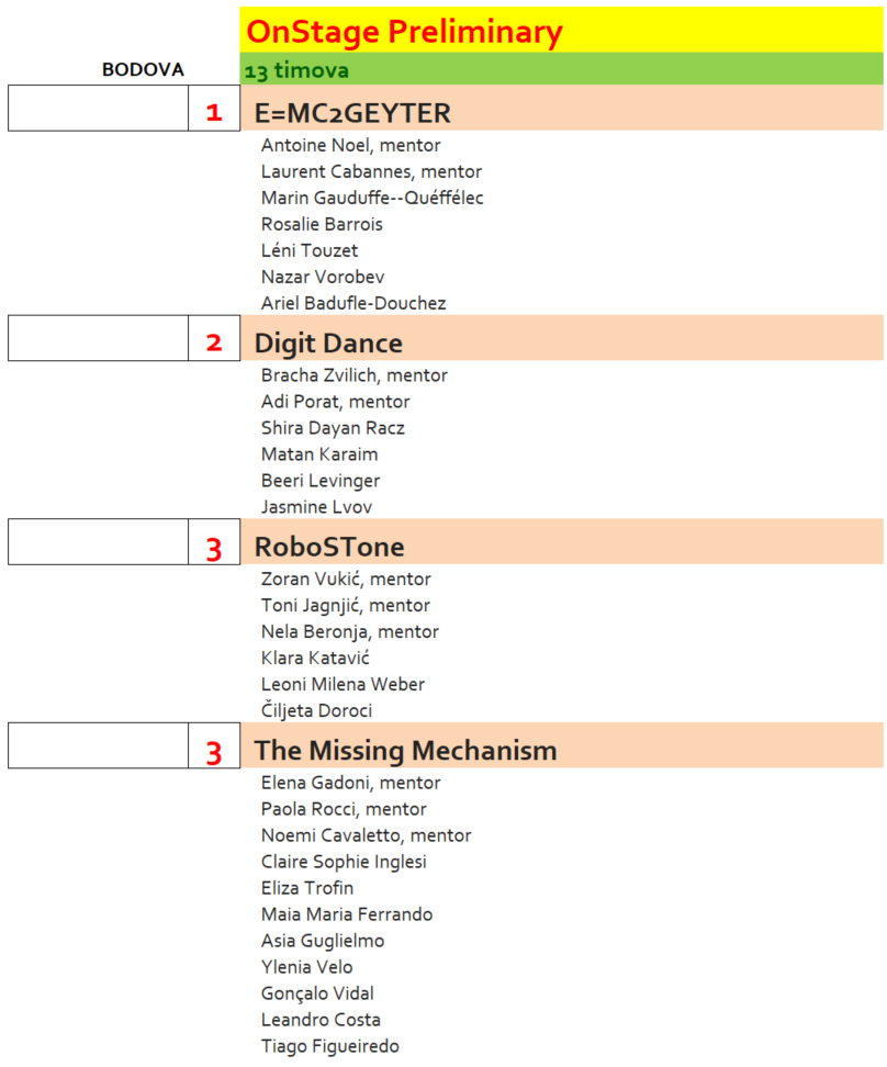 SVI HRVATSKI NATJECATELJI, EKIPE I MENTORI