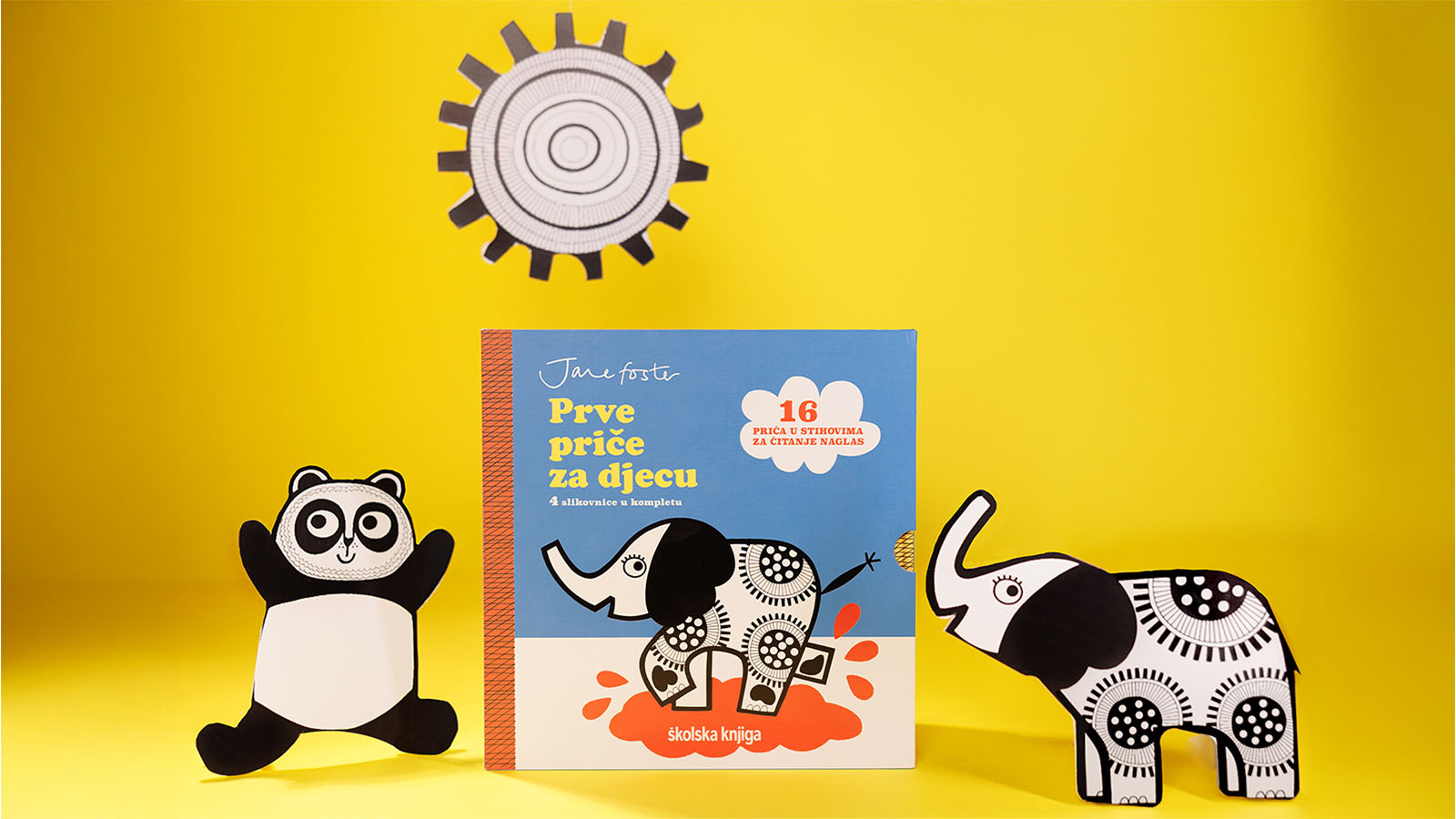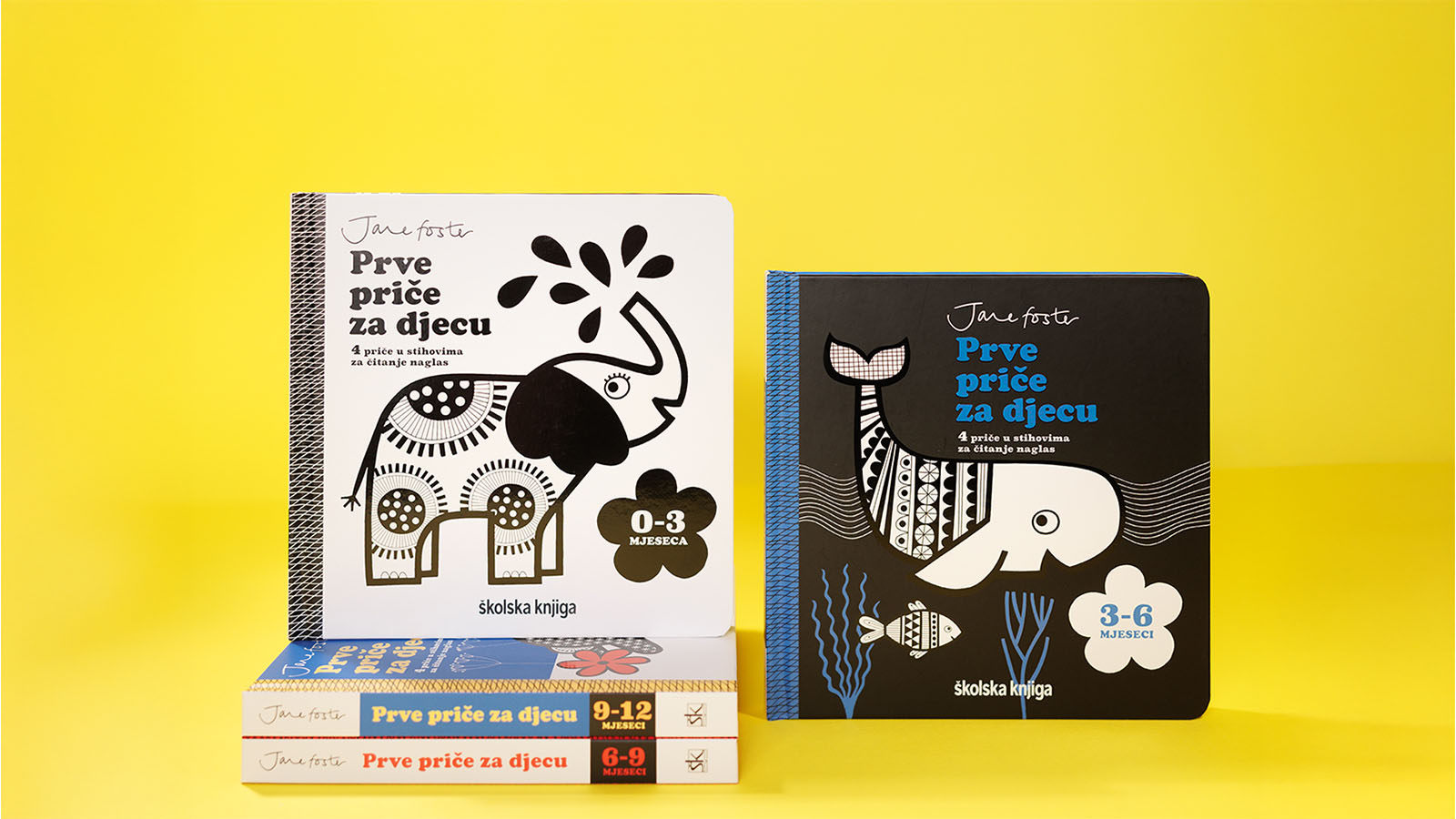Brižljivo smišljen komplet Prve priče za djecu razvijen je u suradnji sa stručnjacima za rani razvoj i sadržava četiri slikovnice koje prate razvoj djeteta tijekom prve godine života. Svaka je slikovnica prilagođena određenoj razvojnoj fazi: kontrastni crno-bijeli motivi za razdoblje od 0 do 3 mjeseca privlače pogled novorođenčadi, u fazi od 3 do 6 mjeseci dodaje se i plava boja koju djeca počinju razlikovati, a slikovnica za one od 6 do 9 mjeseci ima crne, bijele, plave i crvene ilustracije jer djeca u tom razdoblju mogu vidjeti gotovo sve boje, da bi se u fazi od 9 do 12 mjeseci dječji vid razvio do mjere u kojoj postaje sličniji vidu odraslih.