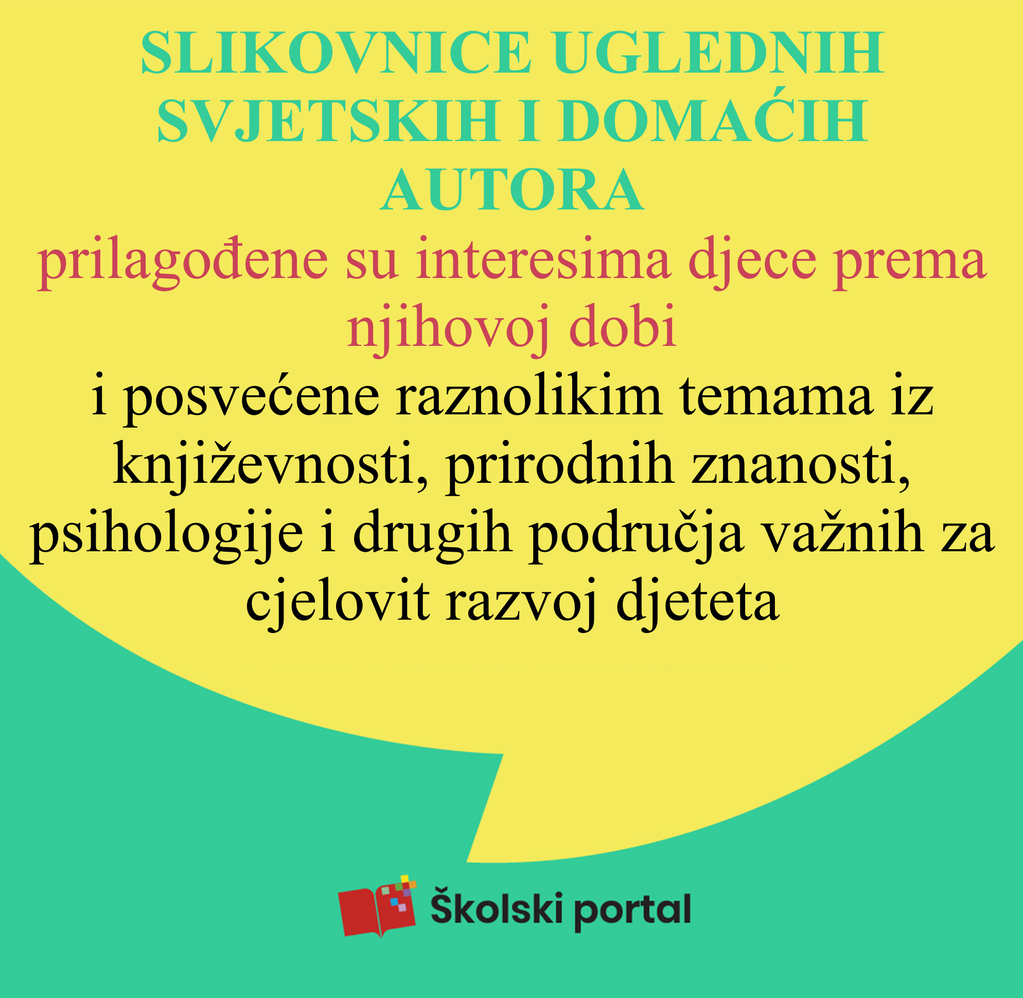 Sve su to razlozi zbog kojih Školska knjiga posvećuje veliku pozornost nakladničkom programu za djecu i mlade, u kojemu svoje mjesto imaju promišljeno odabrani naslovi uglednih svjetskih i domaćih autora. Bogat izbor s više od četiristo slikovnica i raskošno ilustriranih knjiga u izdanju Školske knjige, Lumena i drugih nakladnika dostupan je i ove godine po sniženim cijenama u Mjesecu dječje knjige (do 31. ožujka) u svim knjižarama i webshopu Školske knjige.