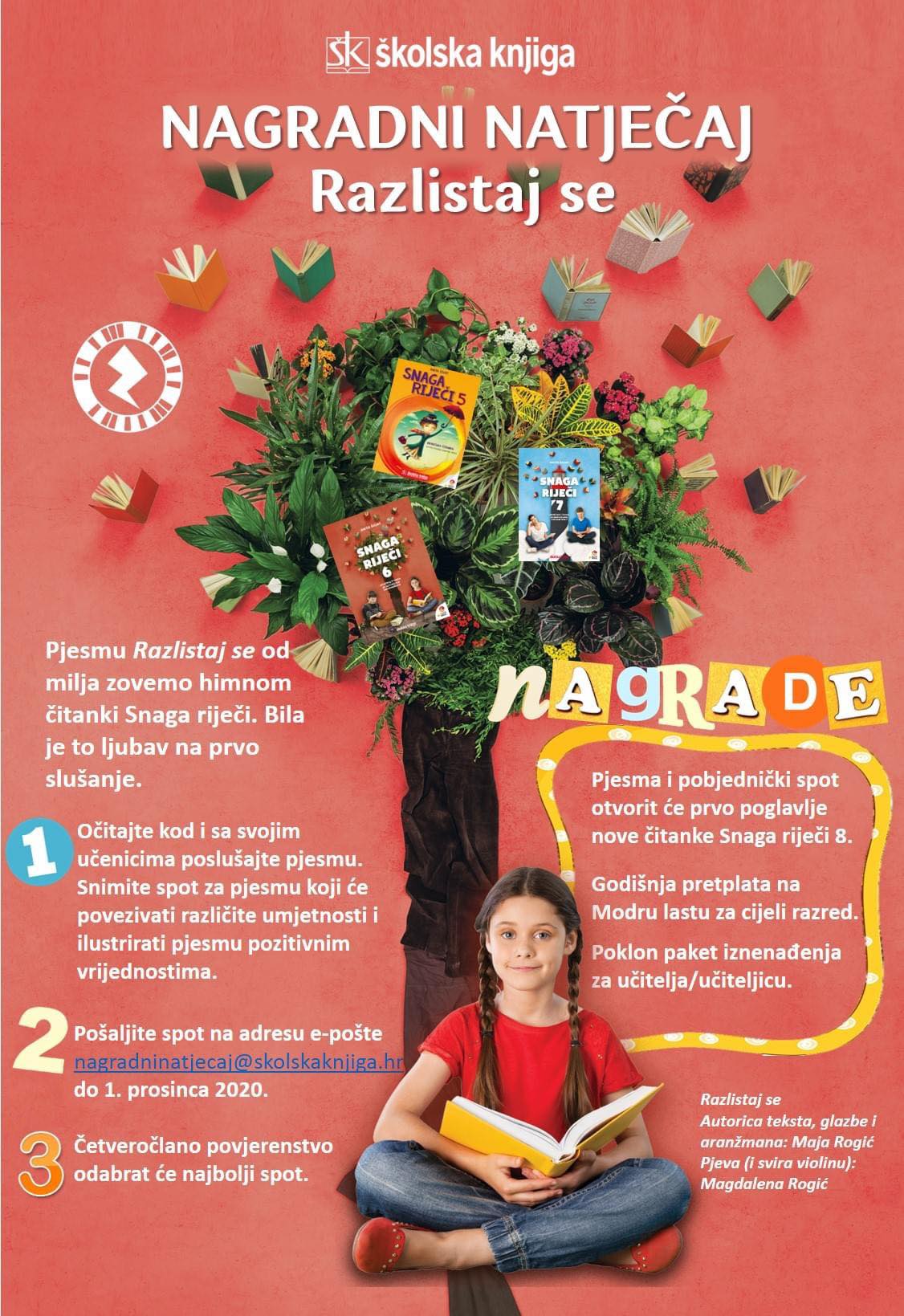 Školska knjiga pokreće veliki nagradni natječaj pod nazivom Razlistaj se. Pjesma Razlistaj se i čitanke Snaga riječi zavoljeli su se na prvo slušanje.