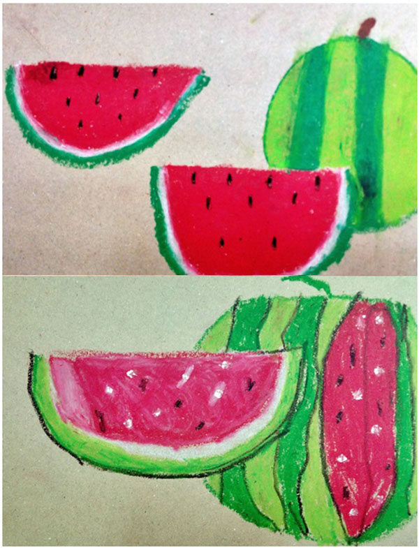 VREDNOVANJE su učenici učinili međusobno (vršnjačko) te zaključili da je to bio lagan zadatak. Posebno su istaknuli da im radovi izgledaju kvalitetnije i bolje gledani skupno iz daljine dok su izloženi, nego dok su ih procjenjivali individualno. Šestero je njih napomenulo da će rad ponoviti kod kuće, jer želi i roditeljima prikazati kako pastela ostavlja masni trag i kako je uočljiv kontrast.