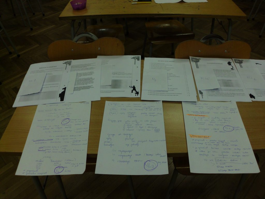 Nakon male priredbe za nove đake prvake, pozvala sam učenike i krenula s njima prema novoj učionici kako bismo se bolje upoznali. Pričali smo o tome gdje se nalaze, koja pravila vrijede u školi. Odmah sam im otkrila jednu tajnu –jedino čujem učenike koji visoko dignu ruku kada žele nešto reći. Pregledavali smo vesele i šarene udžbenike. Pričali o svim nastavnim predmetima. Dotaknuli se i ocjena. Stara dobra fora s olovkom koja ima dva kraja: ako netko želi peticu [napisano na gornjem  kraju olovke] onda odmah povuče i obveze koje petica donosi [napisano na donjem kraju olovke]