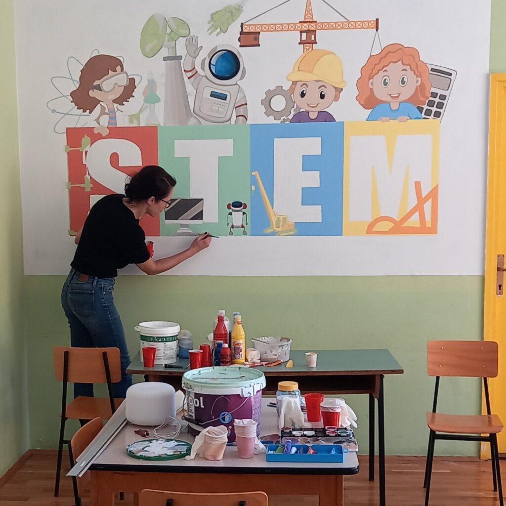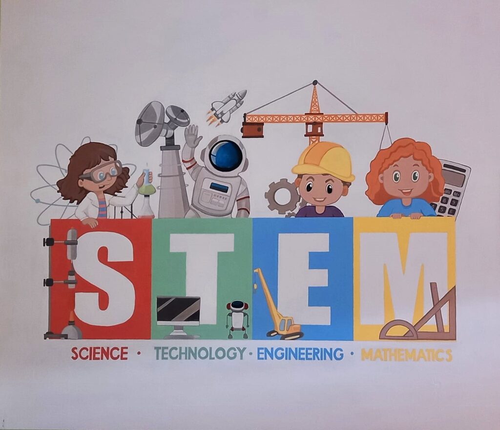 Svi već znamo da se STEM pristup obrazovanju temelji na kombinaciji različitih područja: prirodnih znanosti, tehnologije, inženjerstva i matematike. Ta pomalo apstraktna akademska disciplina na našem je novom muralu dobila ljudska obilježja kako bismo ju što uspješnije približili uzrastu učenika. U toj je priči najvažniji način učenja tih područja, a STEM pristup zapravo znači interdisciplinarno učenje, odnosno izbjegavanje učenja svakog predmeta za sebe.