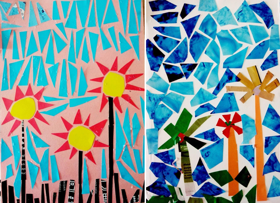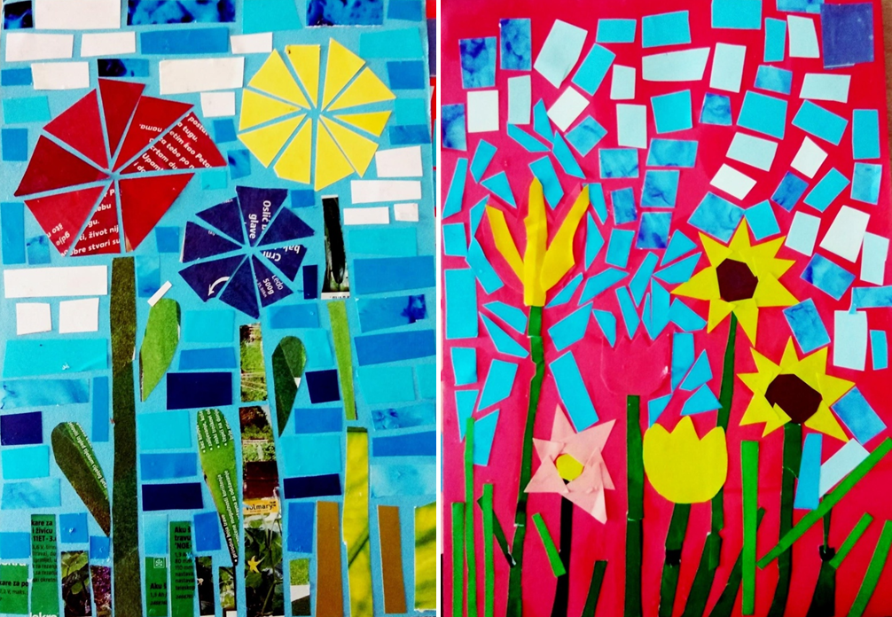 Naš je motiv bila cvjetna livada, a koristili smo se papirom u boji od mnoštva reklama koje su učenici pronašli u svojim poštanskim sandučićima.