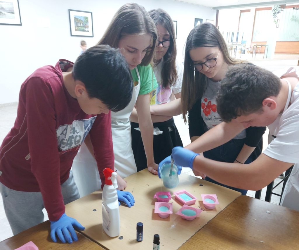 Dan se kemije i biologije predstavio učenicima sedmih razreda radionicom Izrada sapuna. Kod učenika su se razvijali interesi za sadržaje iz kemije i biologije, povezivanje teoretskog znanja s praktičnim radom te razvijanje praktičkih vještina aktivnostima proizvodnje sapuna. (učiteljice Ljiljana Macanić i Martina Božičević)