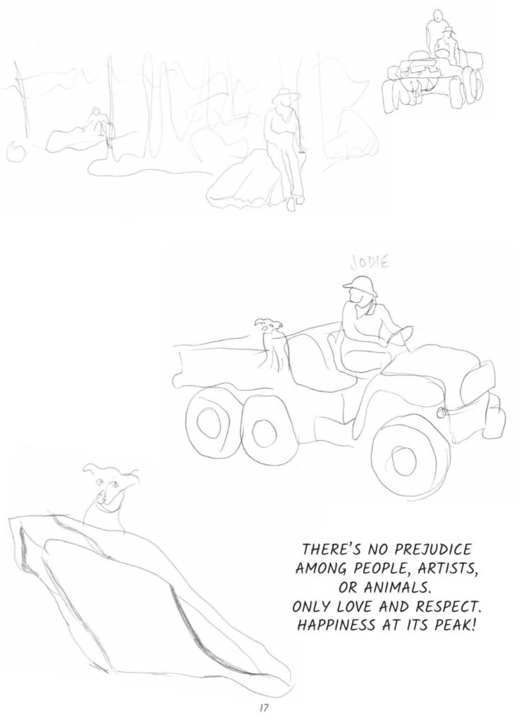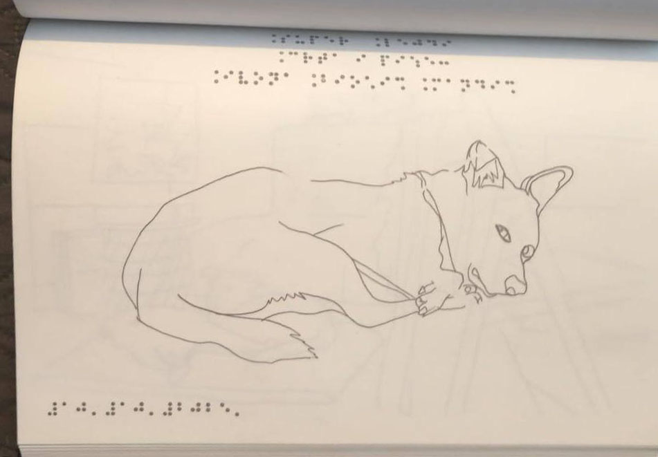 Umjetnica objašnjava kako se svaki njezin crtež pojedinačno može taktilno percipirati pa dodaje: „Strategija podrške uključuje vodstvo osobe koja vidi dajući jasan opis uz svaku stranicu i crtež. Radikalno sam pristupila svom taktilnom stripu.