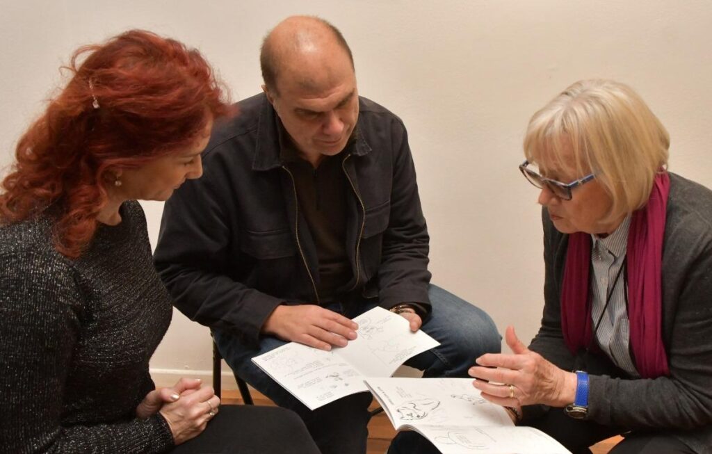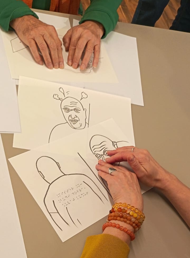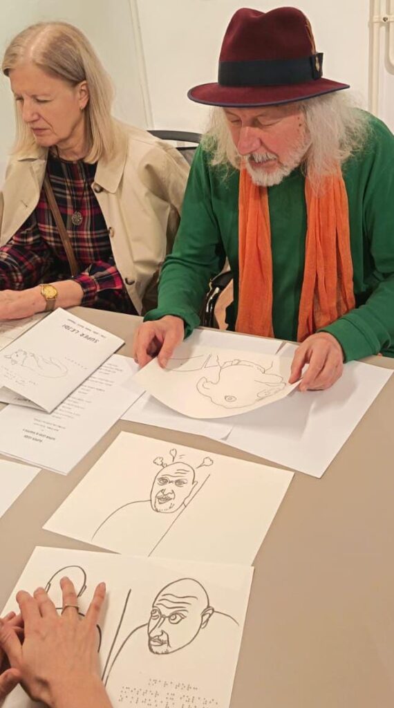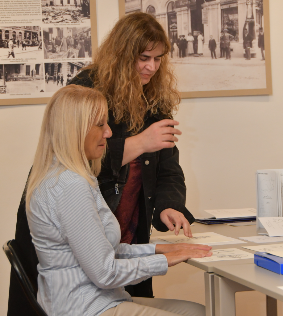 Pozvala sam Vojina Perića na taktilnu percepciju svojih crteža da čujemo i glasne konstruktivne komentare. Vojin je ukazivao na nedostatke prilagodbe i na lakšu taktilnu percepciju gdje je crtež bio više naglašen.