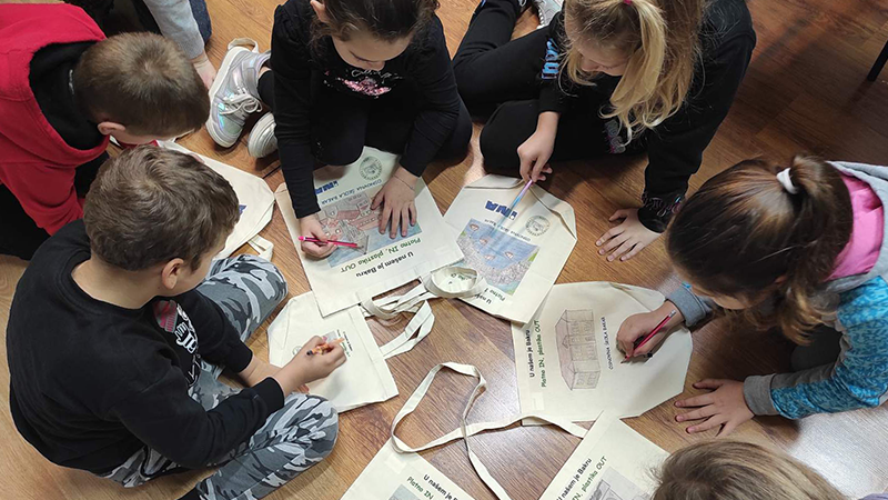 Učenici su napravili prigodne platnene vrećice koje su oslikali motivima svoga grada. Na svakoj su vrećici napisali ekološku poruku koja potiče na važnost izbjegavanja plastike u svakodnevnom životu. Učenici ne žele gledati kako se plastične vrećice na vjetru „šetaju“ ulicama grada pa su istražili koliko je vremena potrebno da se neki materijali razgrade u prirodi. Svoj su istraživački rad predstavili u školi upoznavši ostale učenike s ekološkim činjenicama koje do sada nisu znali. Odlučili su da će od sada sve što kupe nositi u platnenim vrećicama, ruksacima i torbama kako bi pridonijeli očuvanju okoliša. Najzabavniji je trenutak ovog druženja bila modna revija. Školski su se hodnici nakratko pretvorili u modnu pistu na kojoj su učenici pokazali platnene torbe različitih modela, a stručni je žiri ocijenio male manekene.
