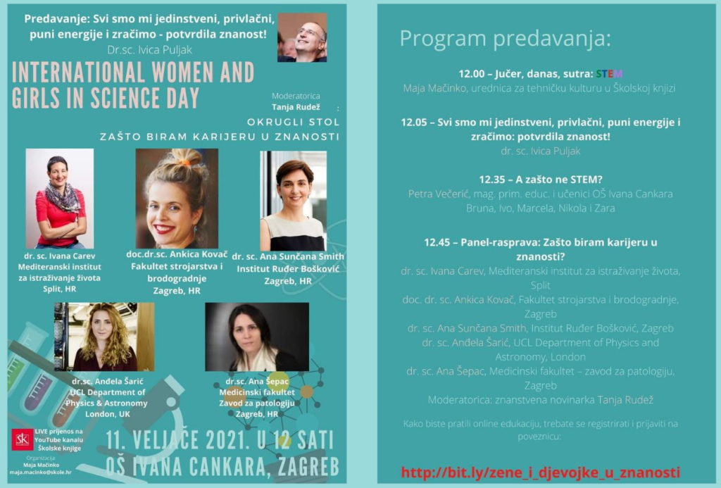 Na taj dan, u uvodu organizatorice Maje Mačinko, prisjetili smo se žena i njihove borbe kroz povijest, upoznali naše domaće znanstvenice i poduzetnice koje su itekako priznate u svijetu, a sve uz podršku Školske knjige koja je ove godine uskočila kao podrška ideji i pomogla nam da naše događanje prebacimo iz Cankarice u virtualni svijet kako bi svi naši dragi gosti mogli iz sigurnosti svojih domova i učionica biti s nama i pratiti predavanja i okrugli stol.