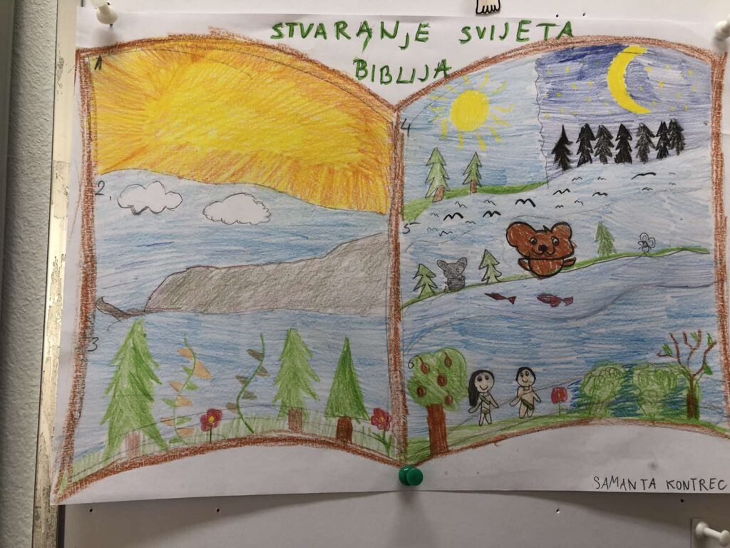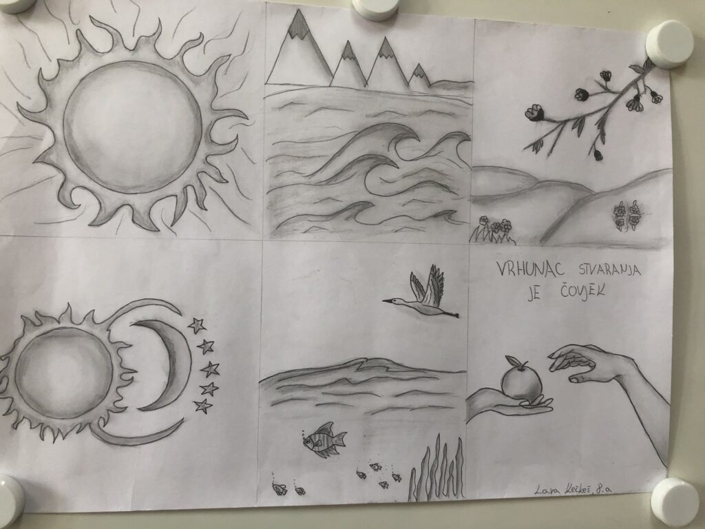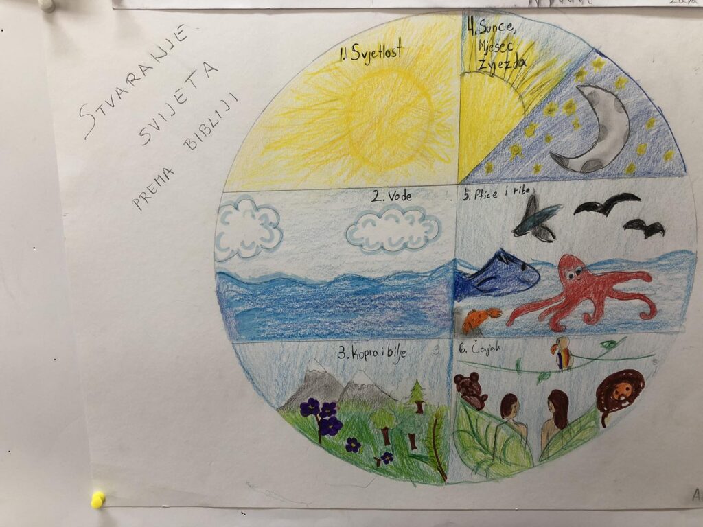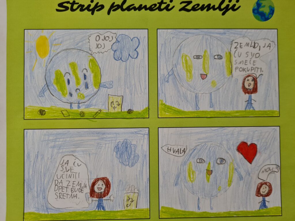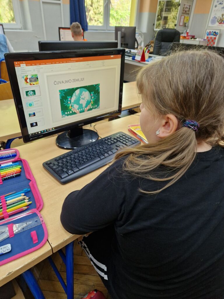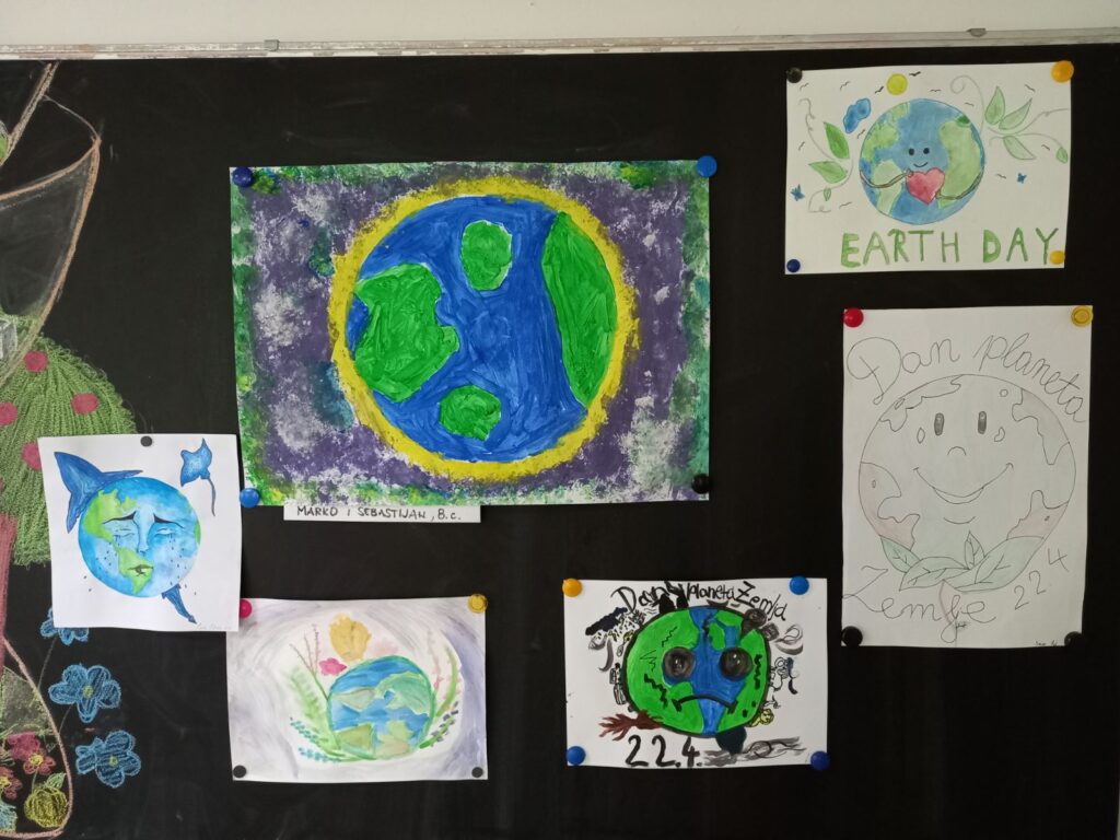 Vjeroučiteljica Ljiljana Grgić razgovarala je s učenicima Liturgijske skupine 7.a i 8.a razreda o postanku svijeta te o povezanosti čovjeka i žive prirode. Poslije toga nastali su zanimljivi likovni radovi. Učenici Likovne skupine s nastavnicom Dubravkom Kolčić Drlje oslikali su školske panoe motivima prirode i u školskim hodnicima postavili izložbu s učeničkim radovima na temu Dana planeta Zemlje. Nastavnica informatike Ana Štigler s učenicima trećih razreda na satu Informatike izrađivala je prezentacije na temu Dan planeta Zemlje u programu MS PowerPoint.