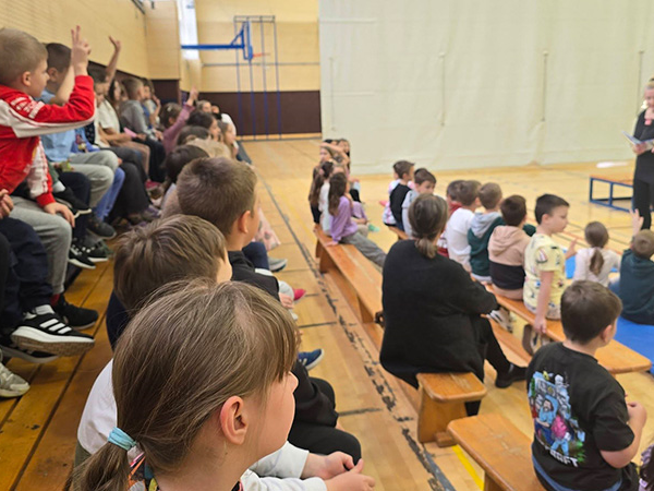 U našoj je školskoj dvorani OŠ Ivan Benković održana glazbena predstava za učenike prvih razreda pod nazivom Žirafa Žiži pleše step, autorski projekt Davorke ANDROIĆ iz Ateliera D17.