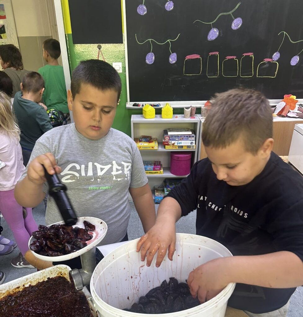 U našem je kraju kuhanje pekmeza od šljiva godinama prava tradicija. Svaka obitelj ima svoje male tajne i recepte, a miris se svježeg pekmeza ujesen širi iz kuhinja i vraća nas uspomenama na bakine šporete i tople obiteljske trenutke. Zbog toga smo ovu tradiciju odlučili prenijeti u svoju školu osmislivši projekt „Pekmezijada“ u kojem su sudjelovali učenici prvih, drugih i trećih razreda. Šljive su nam donijeli roditelji, a djeca su tijekom aktivnosti učila kako se od ploda stvara prava domaća zimnica.