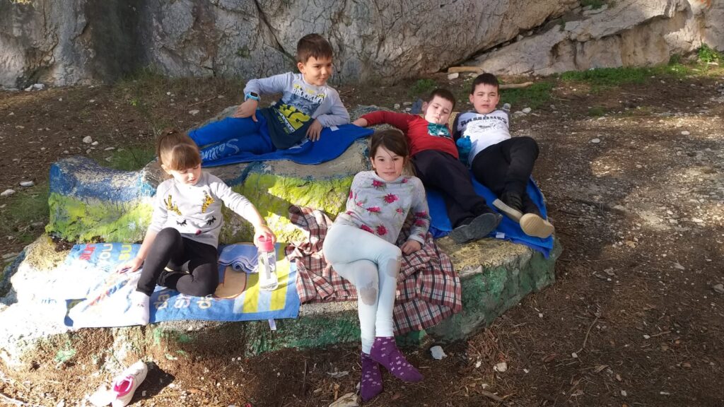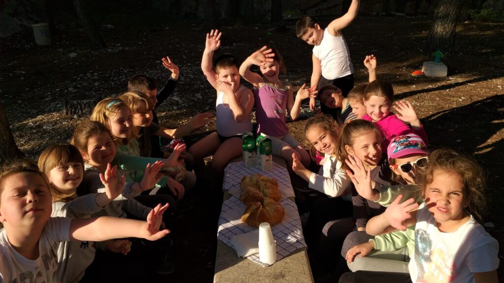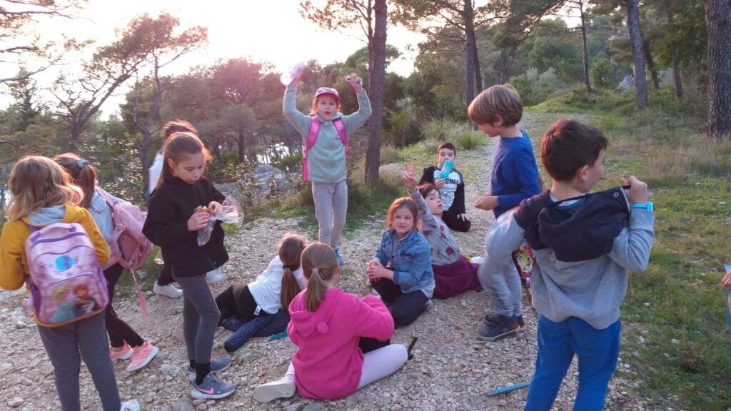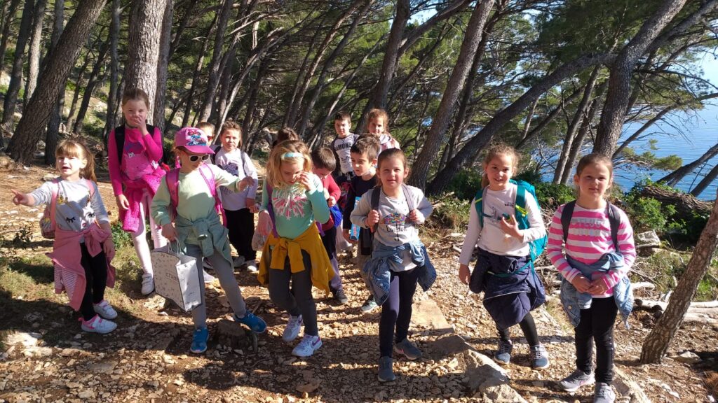 Nakon slobodne igre uputili smo se natrag veselo pjevajući naučene proljetne pjesme. Promatrali smo okolinu i učili nazive otoka koji su se vidjeli s pješačkih staza – Brača, Hvara i poluotoka Pelješca.