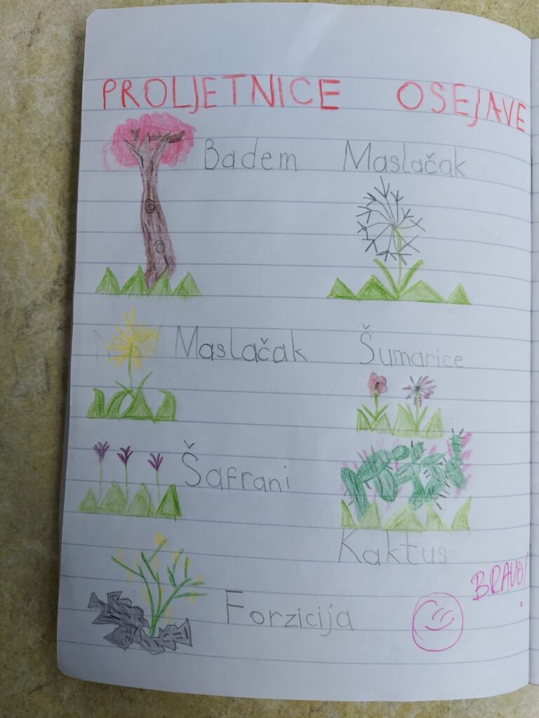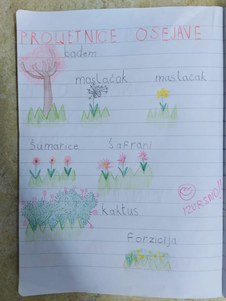 Učenici su dobili domaći rad da prema fotografijama, koje smo poslali u razrednu grupu, nacrtaju proljetnice svoga zavičaja.